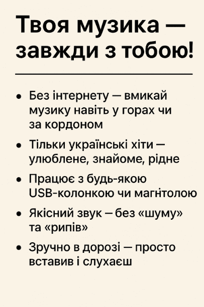 Останнє замовлення: 40 хв томуХочеш слухати улюблену музику без інтернету?
