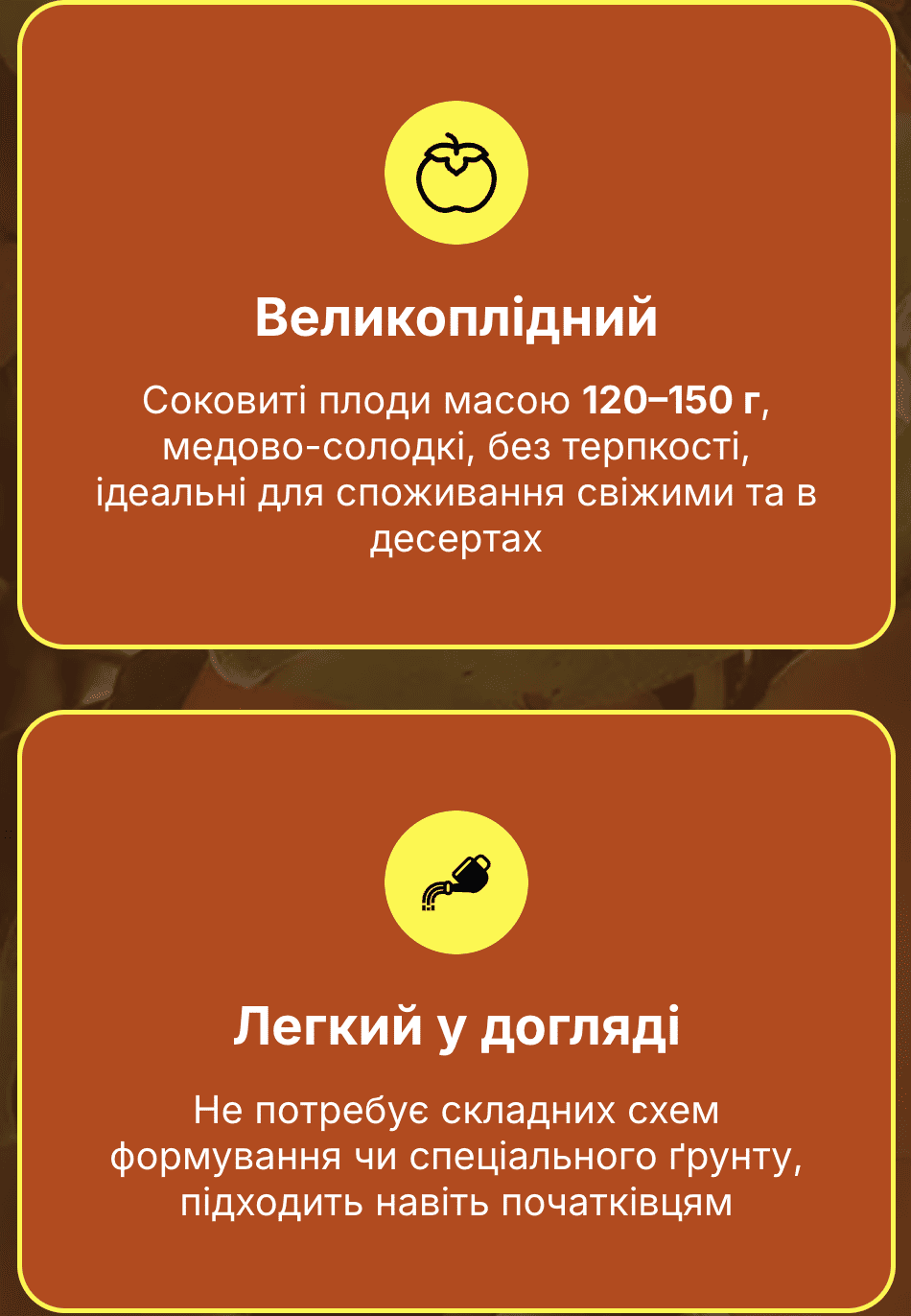 - Дерево, яке дивує сусідів Сучасний сорт, рідкість для українських садів — ідеальний шанс виділитися й першими скуштувати власну хурму.