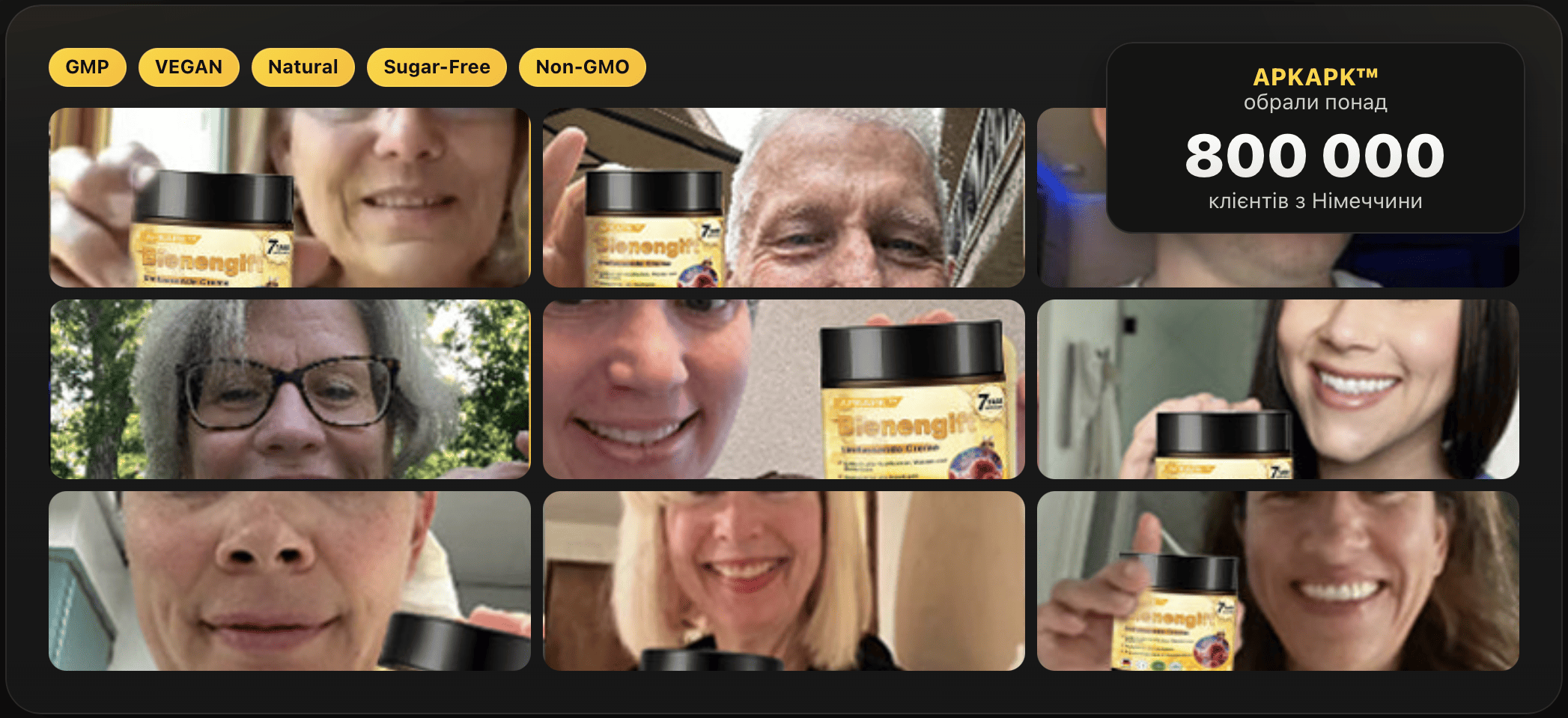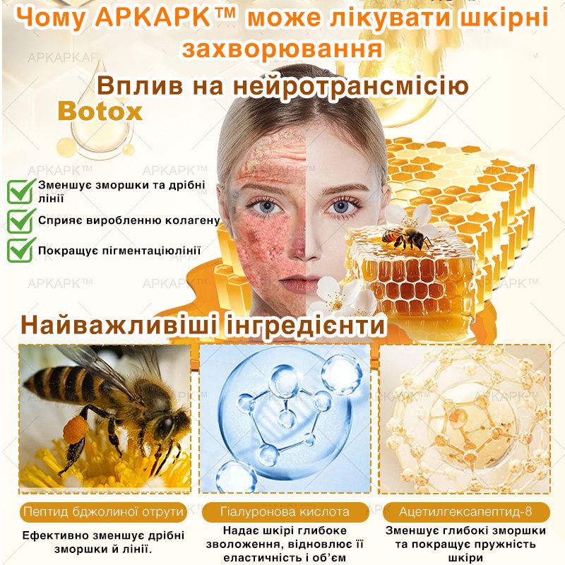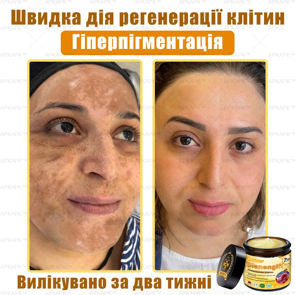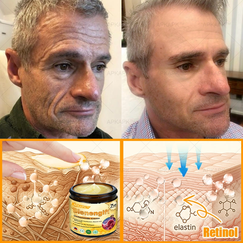 Зморшки, тьмяність і пігментні плями — більше не проблема. Унікальна формула Bienengift активно відновлює клітини, розгладжує шкіру та зменшує ознаки старіння вже за кілька днів.