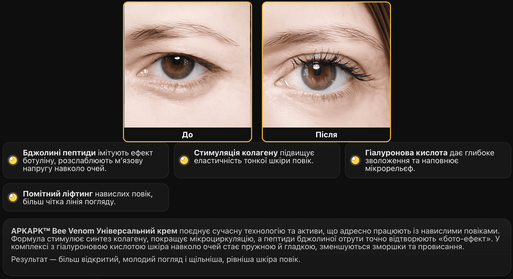 Глибоке відновлення для навислих повік та зони навколо очей