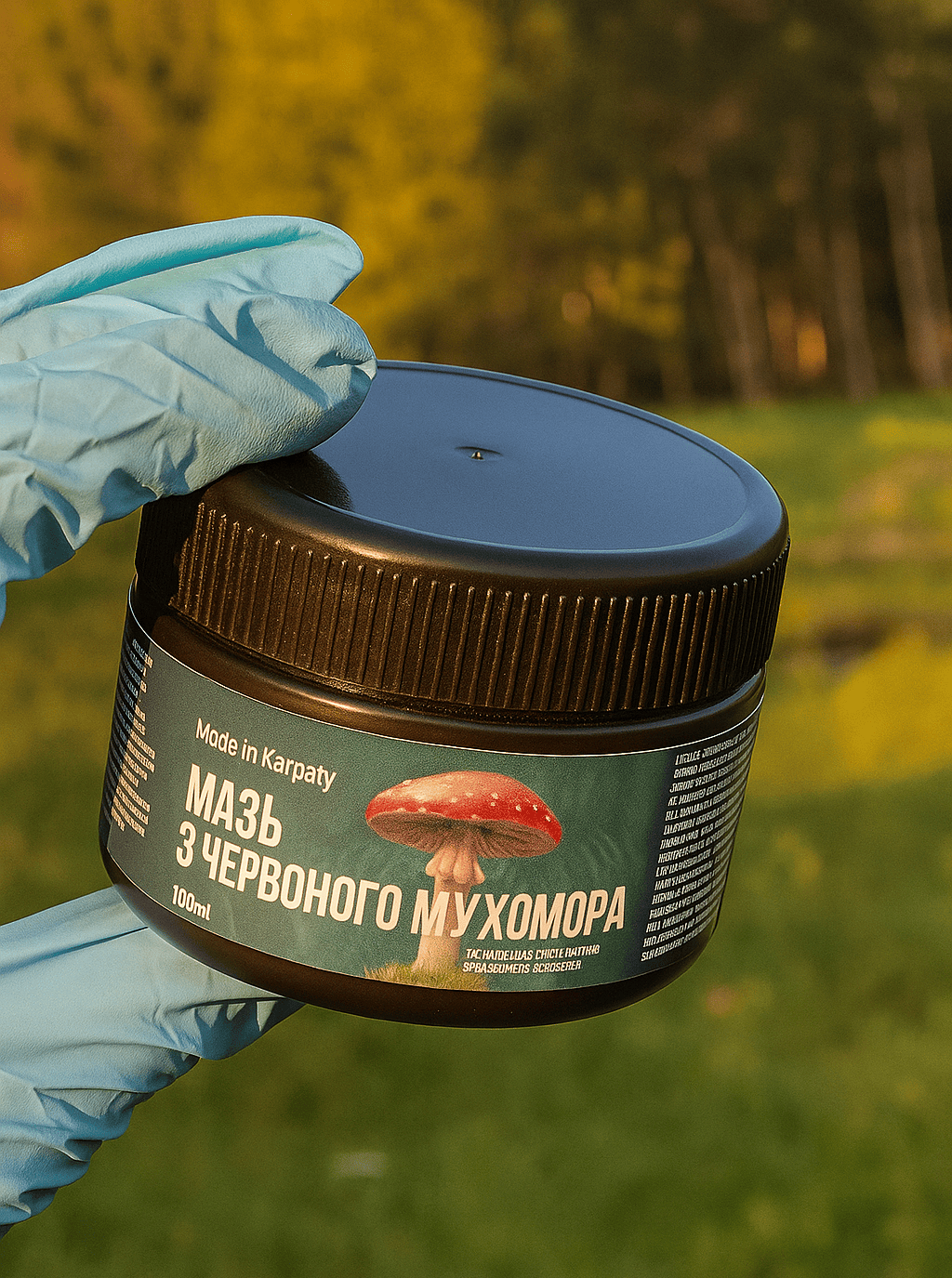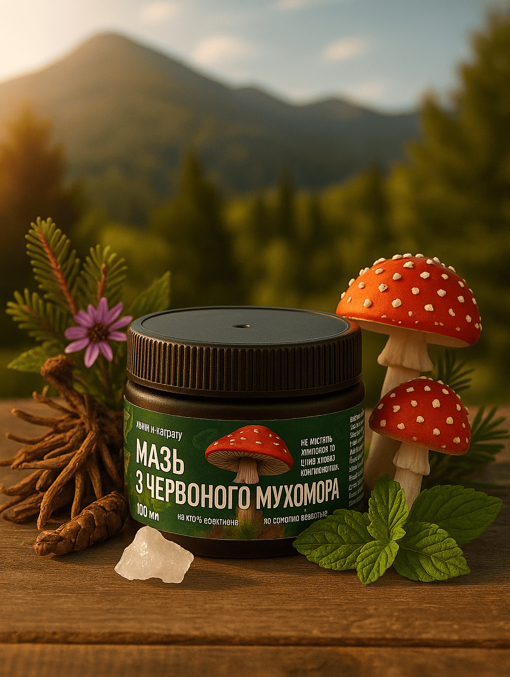 Сьогодні ми відновили стародавній рецепт і перетворили його на мазь з червоного мухомора, створену в серці Карпат. Повністю натуральна, без жодної хімії, вона наповнена енергією гір та силою природи — відновлює легкість рухів, знімає втому та напруження