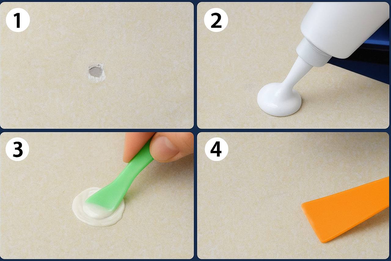 Ця надзвичайно ефективна паста призначена для ремонту сколених плиток, зламаних країв і тріснутої кераміки, забезпечуючи ідеальний результат за одне нанесення.