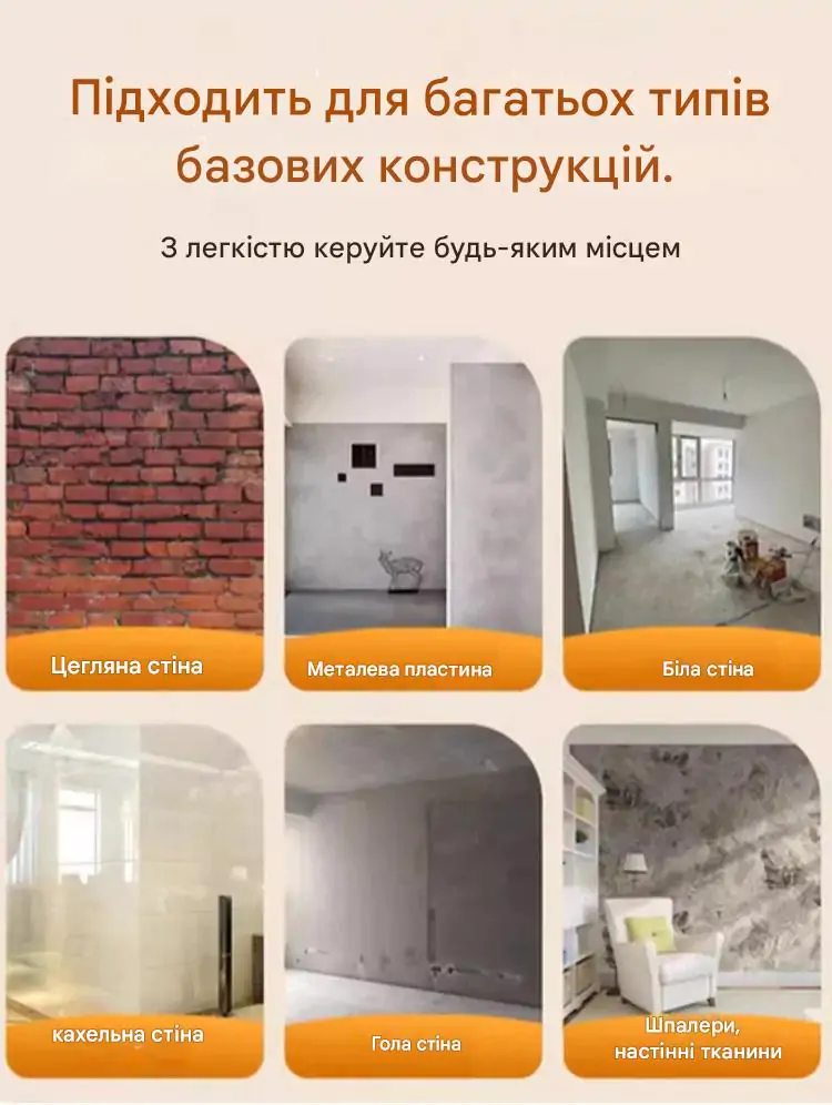 • Підходить для різних типів поверхонь, від стін до підлог.