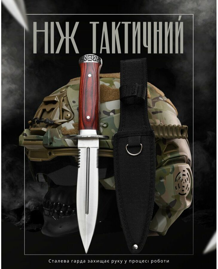 Класичний кинджальний профіль надає йому ефектного вигляду, а дерев’яна рукоять забезпечує ідеальний хват.