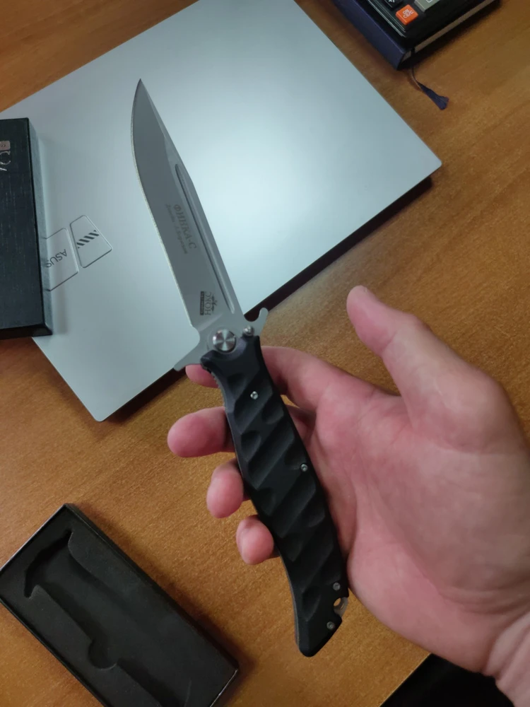 За свої гроші ідеально. Метал якісний, досить гострий клинок, лезо не люфтить. Незручність тільки в одному, переведення в складаний стан, що, не погіршує втім загальне враження від клинка. Однозначно рекомендую