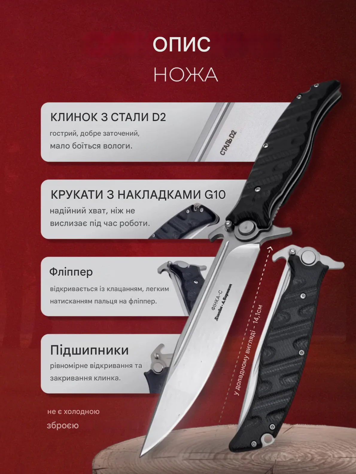 Гарний ніж, у руці сидить потужно, рукоядка з приємного матеріалу