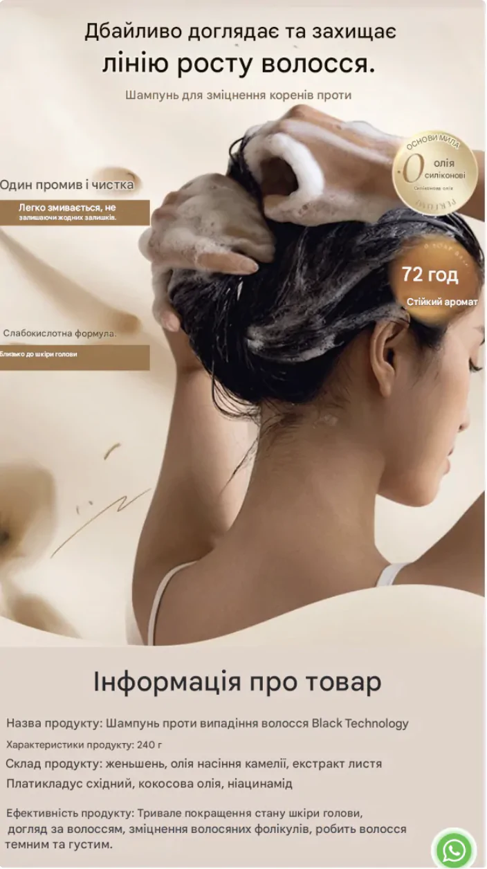 Останнє замовлення: 40 хв томуПОВЕРНІТЬ ЗДОРОВʼЯ ВОЛОССЯ ТА ВІДЧУЙТЕ РІЗНИЦЮ З НАШИМ ШАМПУНЕМ!